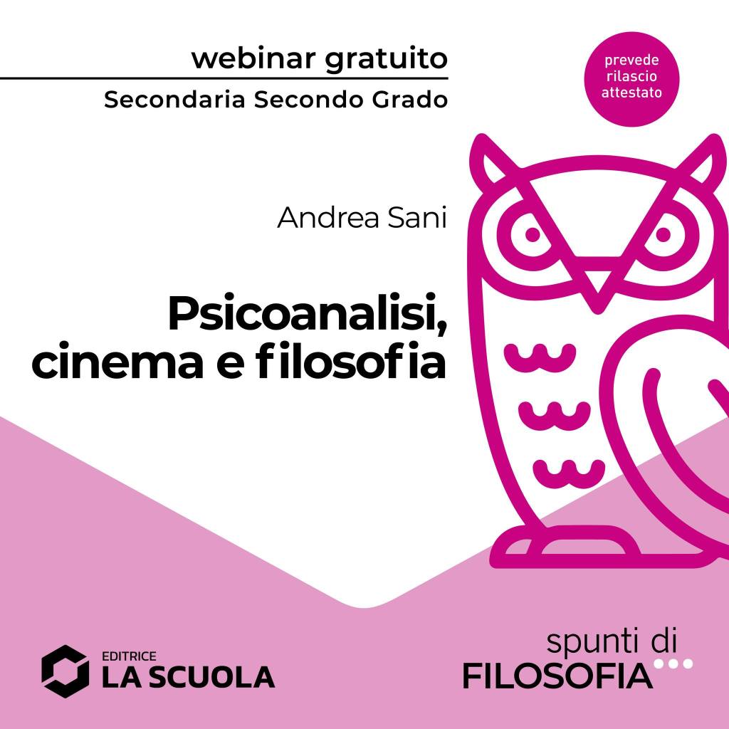 - Psicoanalisi, cinema e filosofia, webinar per insegnanti di filosofia della scuola media superiore organizzato dalla casa editrice La Scuola, 11 dicembre 2024
