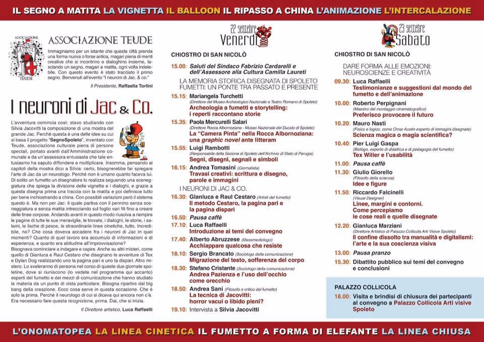 - La tecnica di Jacovitti: horror vacui o libido pleni?, intervento al Convegno I neuroni di Jac & Co., Complesso Munumentale di San Niccolò, Spoleto, 22 settembre 2017