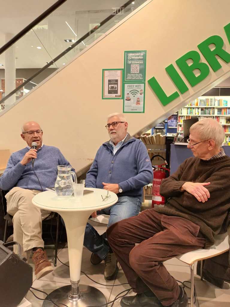 Giovan Battista Carpi, Alberto Becattini e Andrea Sani alla presentazione del libro di A. Sani, Fumettopoli